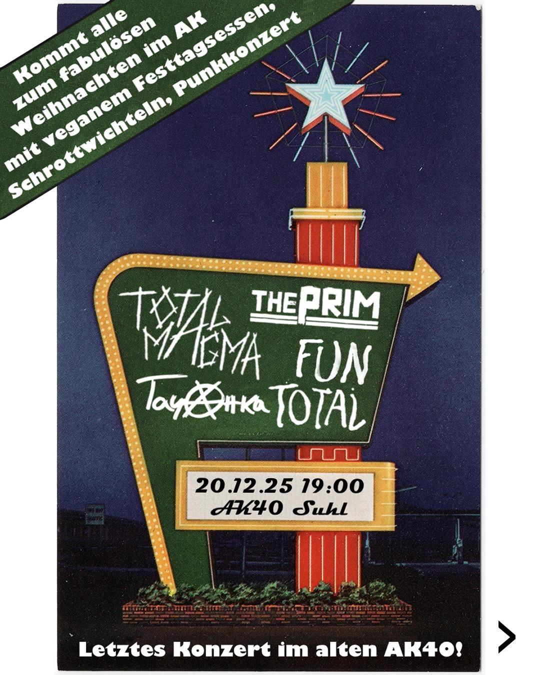 Kommt alle zum fabulösen Weihnachten im AK mit veganem Festessen, Schrottwichteln und Punkkonzert!🎄